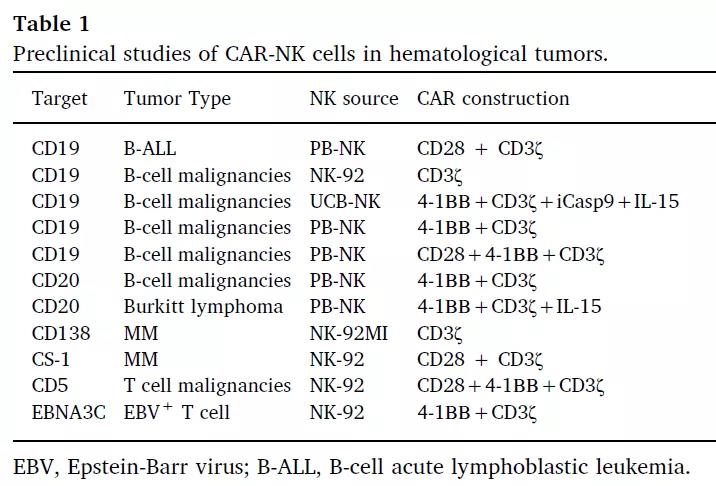 ▲ CAR-NK細胞在血液瘤中的臨床前研究